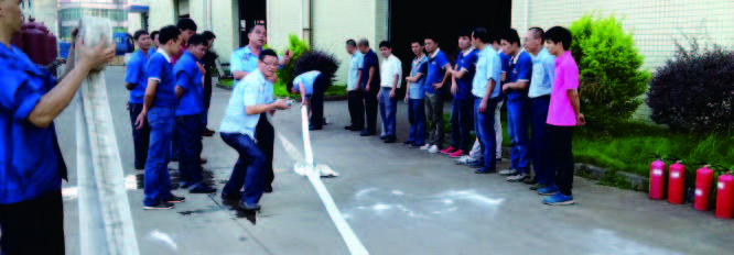 隨后、行政部副經(jīng)理就火災(zāi)報警、緊急疏散、火災(zāi)現(xiàn)場逃生、如何自救等事項做了詳細的講解和說明,并對如何使用手提式干粉滅火器、消防水帶等消防器材進行了模擬實戰(zhàn)演練,整個活動過程井然有序,員工參與熱情高漲,隨后,制造中心總經(jīng)理對演練活動情況進行了點評。