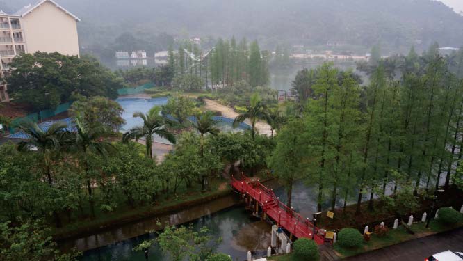 細(xì)雨蒙蒙后的山莊煙霧繚繞,山清水秀,空氣清新。酒店前面是小橋,流水,杉木;后面是大山,綠樹(shù),水庫(kù);大家放下行李便成群結(jié)隊(duì)的開(kāi)始活動(dòng),有的爬山,有的去水庫(kù),有的泡溫泉,有的騎自行車(chē),當(dāng)然也有麻將愛(ài)好者選擇在這山水之間享受著小賭怡情的樂(lè)趣。