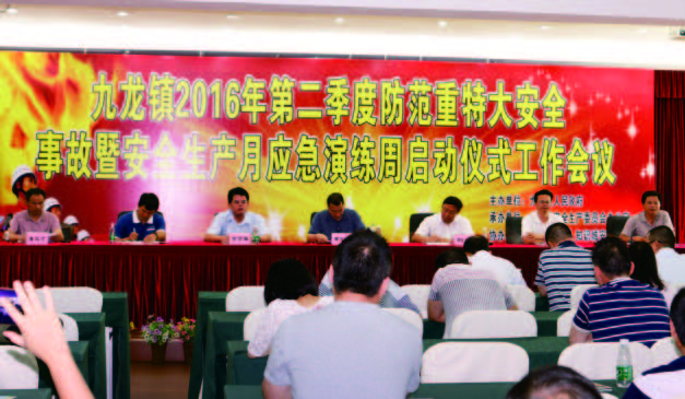 6月24日(星期五)上午,九龍鎮(zhèn)2016年第二季度防范重特大安全事故暨安全生產(chǎn)月應(yīng)急演練周啟動儀式工作會議在我公司三樓會議室隆重召開,九龍鎮(zhèn)鎮(zhèn)長黃俊韜、副鎮(zhèn)長劉猛、開發(fā)區(qū)