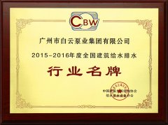 集團榮獲2015-2016年度“全國建筑給水排水行業(yè)名牌”榮譽稱號